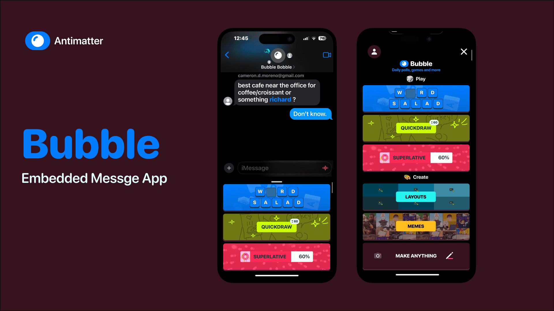 A vivid mini app suite of social games to play while connecting with friends.