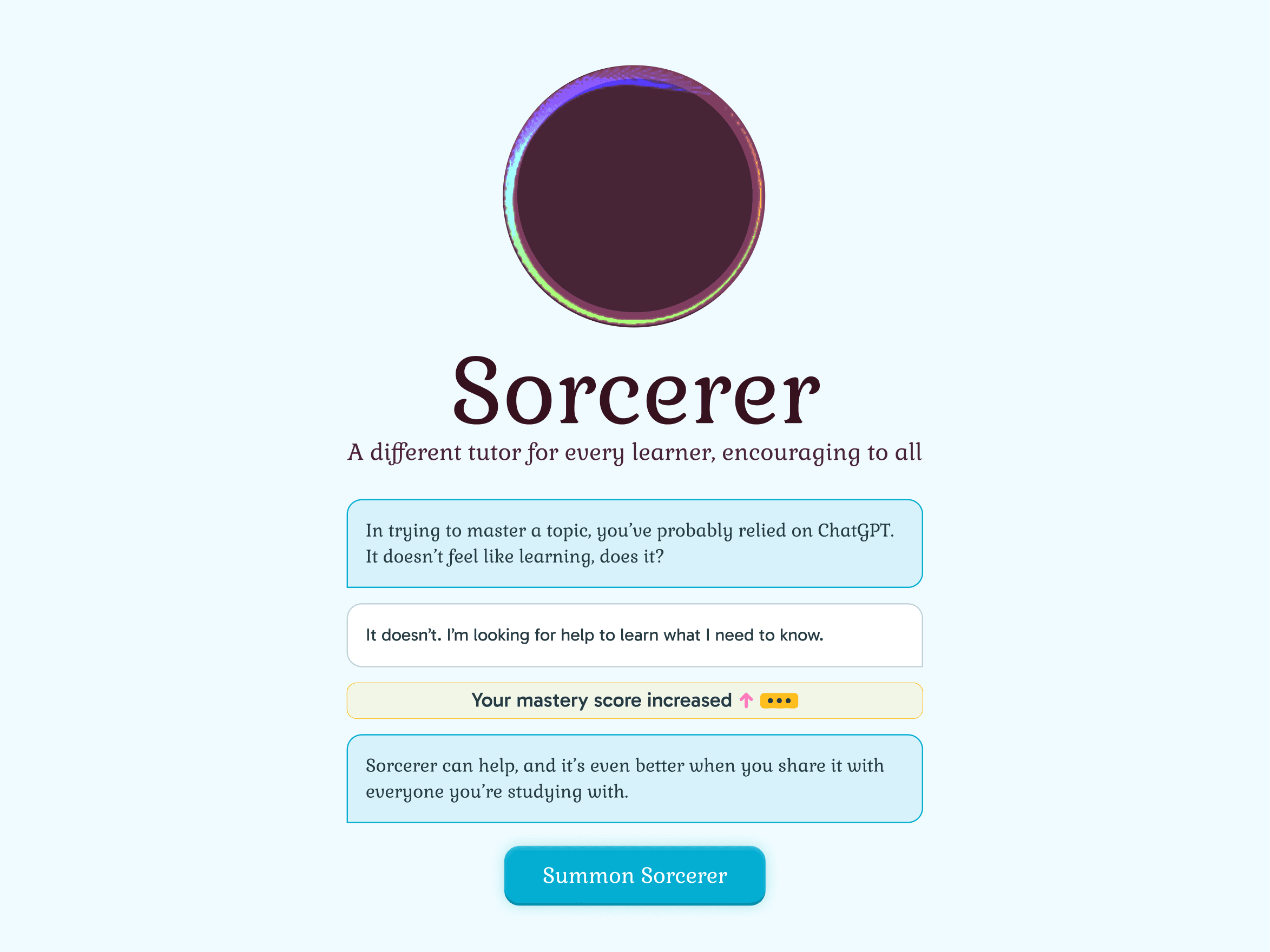 Differentiated AI questioning: Unlike other tools, Sorcerer tailors its questions based on prior student performance, scaffolding learners toward deeper understanding.